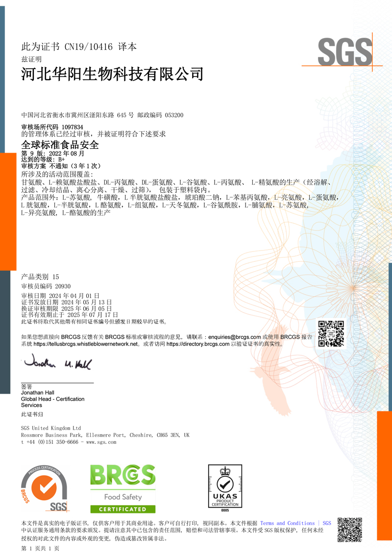 河北華陽集團(tuán)坐落于河北省衡水市冀州區(qū)省級(jí)工業(yè)園區(qū)(始建于1987年,前身為冀州市華陽化工有限責(zé)任公司)。集團(tuán)下屬四個(gè)公司:河北華陽生物科技有限公司、河北華悅氨基酸科技有限公司、滄州華晨生物科技有限公司、衡水市陽力商貿(mào)有限公司。主要生產(chǎn)甘氨酸、L-丙氨酸、L-蘇氨酸、DL-蛋氨酸、L-賴氨酸鹽酸鹽、L-半胱氨酸鹽酸鹽、干貝素等氨基酸系列食品級(jí)產(chǎn)品,廣泛應(yīng)用于食品、飲料、飼料等行業(yè)。......